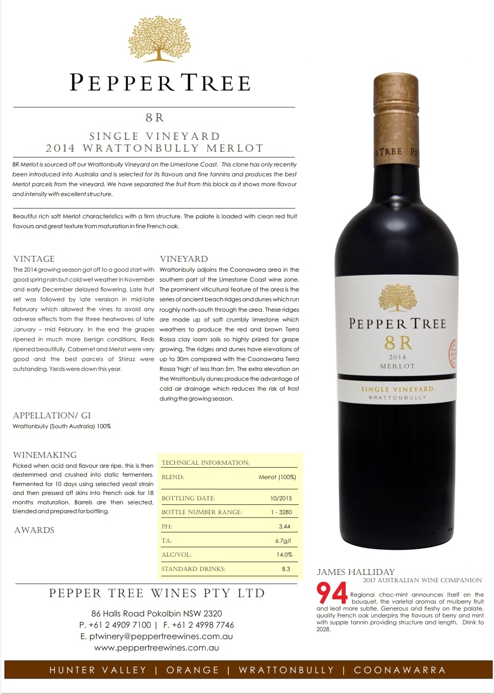 8R Merlot is sourced off our Wrattonbully Vineyard on the Limestone Coast. This clone has only recently been introduced into Australia and is selected for its flavours and fine tannins and produces the best Merlot parcels from the vineyard. We have separated the fruit from this block as it shows more flavour and intensity with excellent structure.
